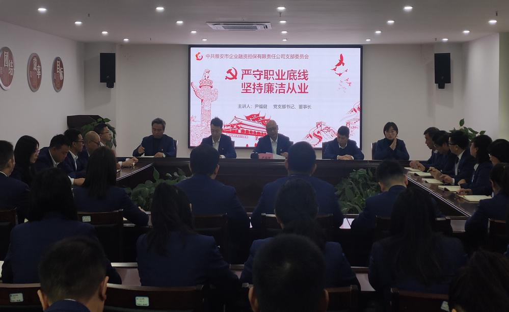 三是講黨課強黨性。市擔(dān)保公司黨支部書記、董事長尹福健以“嚴守職業(yè)底線,堅持廉潔從業(yè)”為題,圍繞“認識新形勢反腐敗斗爭的形勢、腐敗出現(xiàn)的原因和防范措施、學(xué)習(xí)廉潔法律法規(guī),防范廉潔風(fēng)險、增強黨員領(lǐng)導(dǎo)干部拒腐防變的能力”四個方面,結(jié)合公司實際為黨員干部上了一堂生動的廉政黨課,警示黨員干部要增強“四個意識”,堅定“四個自信”,做到“兩個維護”,強化黨性修養(yǎng),自覺增強“免疫力”。